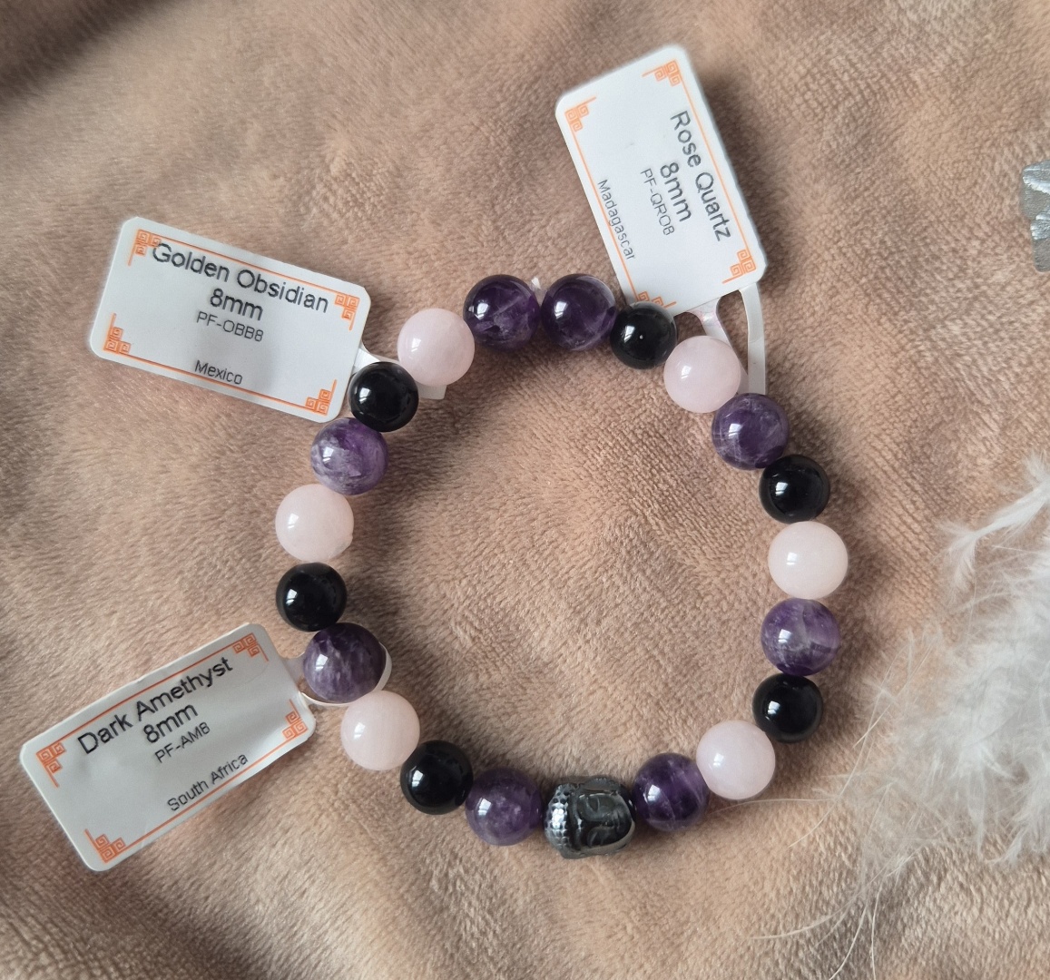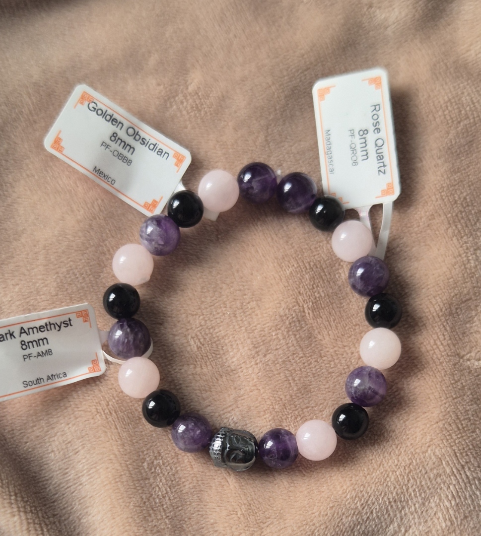 Bracelet en Quartz Rose – Obsidienne Noire et Améthyste