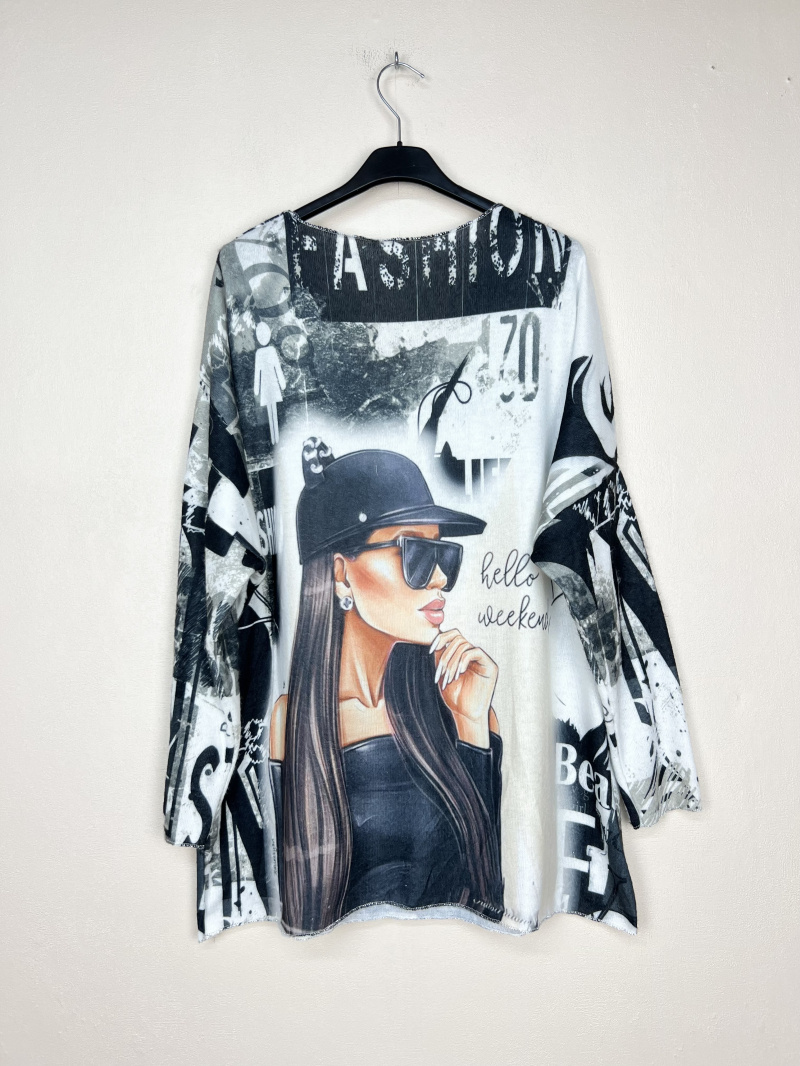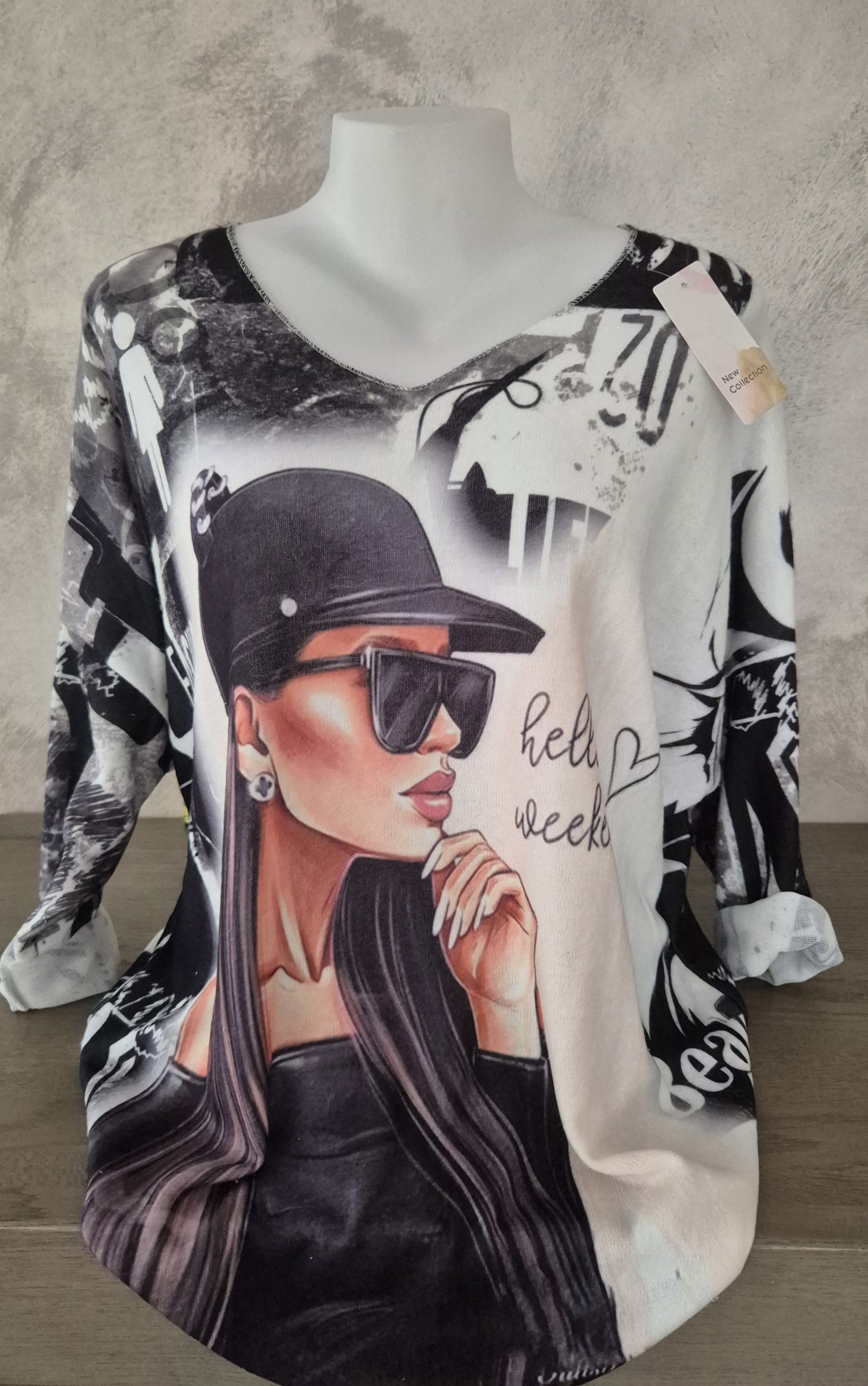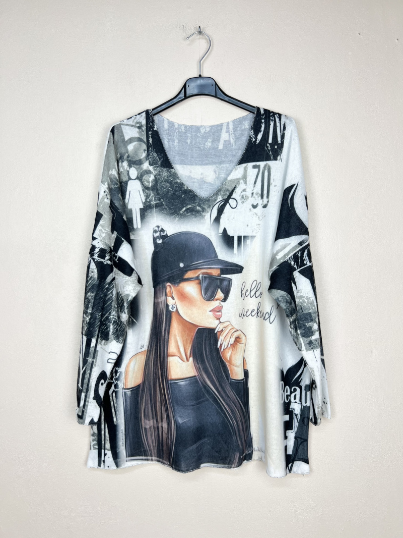 Pull col V à motifs –  Manches longues – Pull Chaud et doux. Provenance : Italie