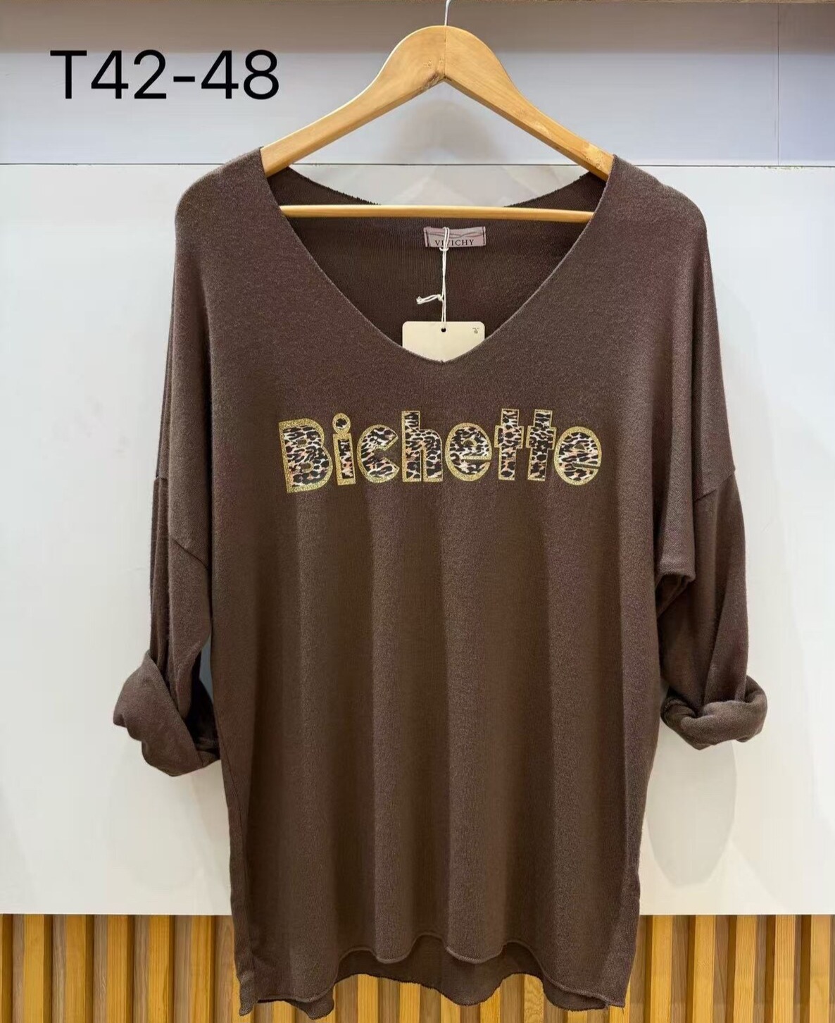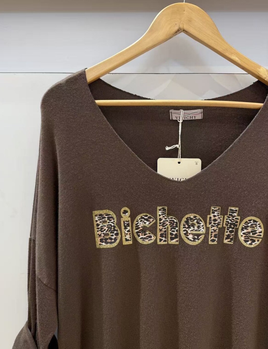 Pull fin col V – Manches longues – Imprimé Bichette