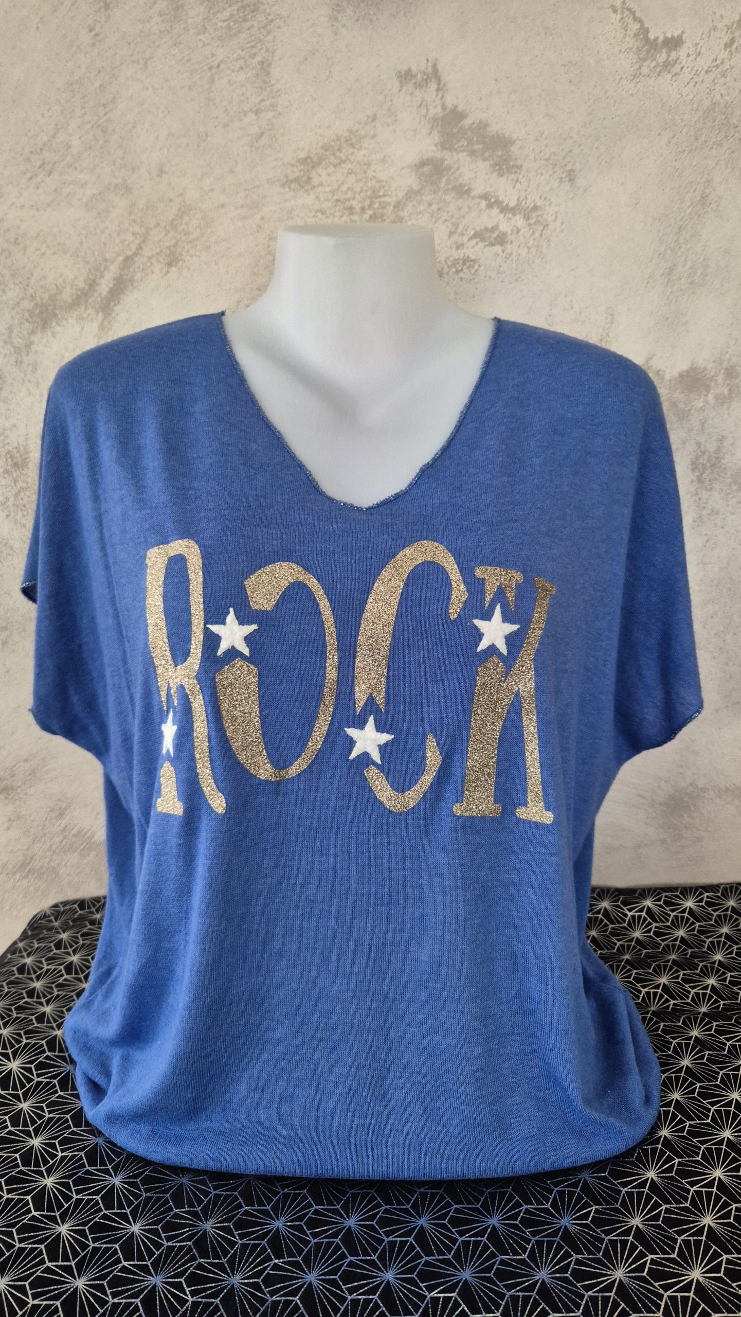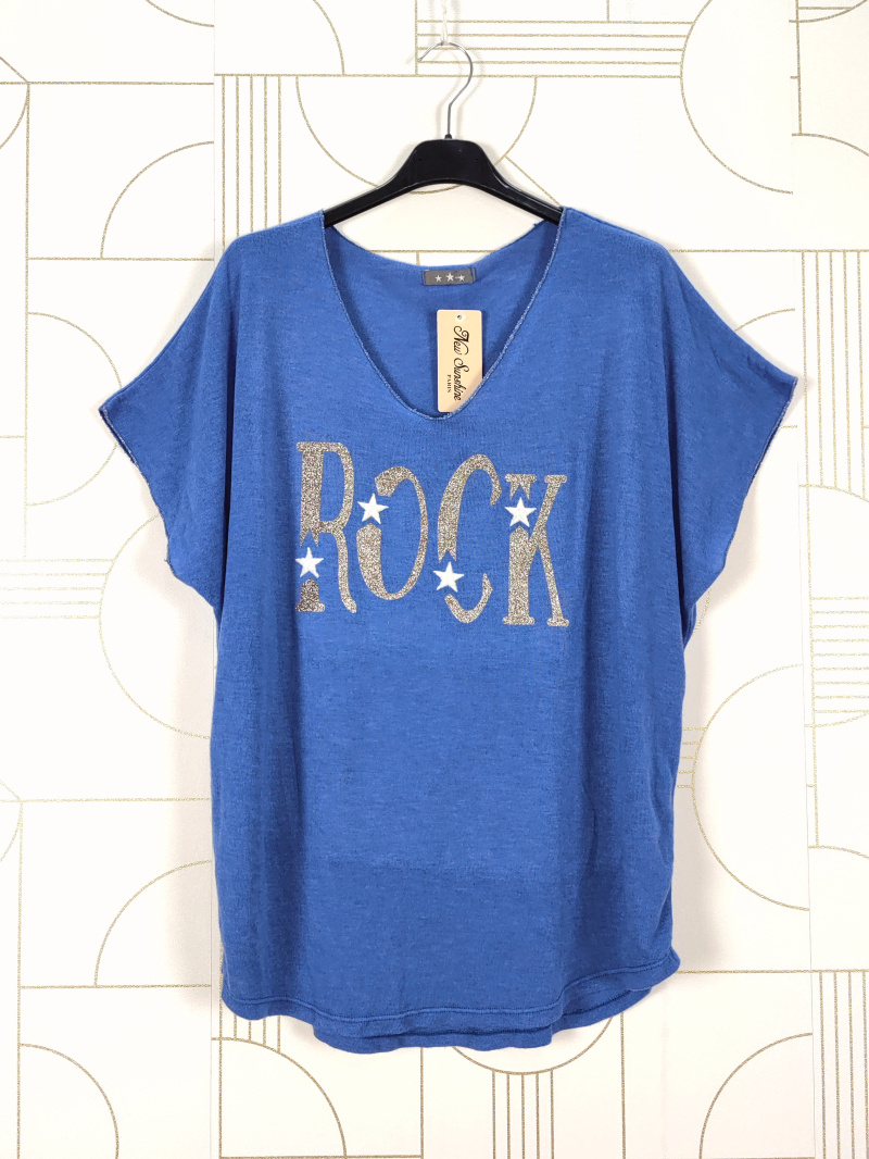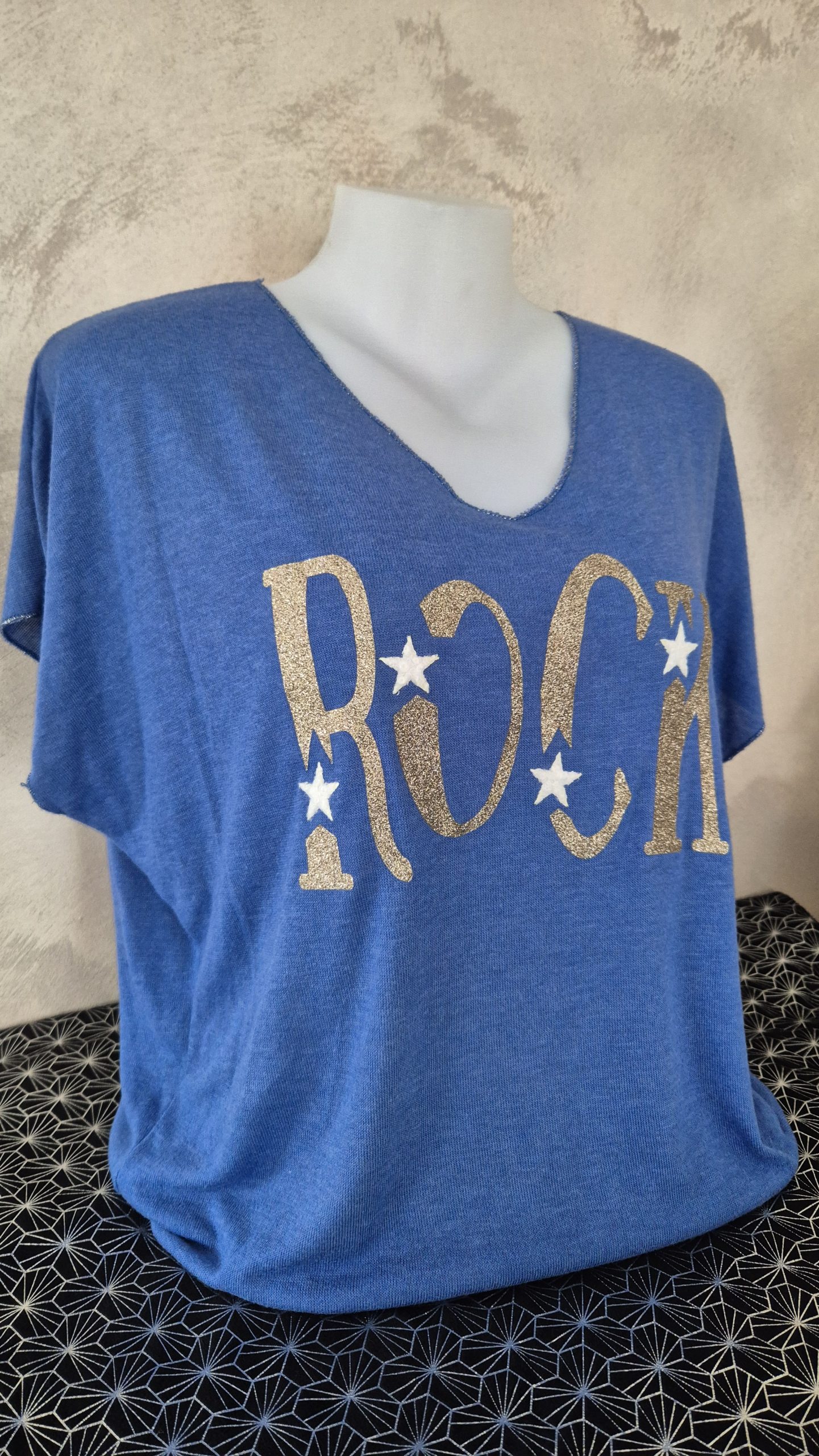 T-shirt ROCK -  Col V Oversize bleu roi - made in Italie